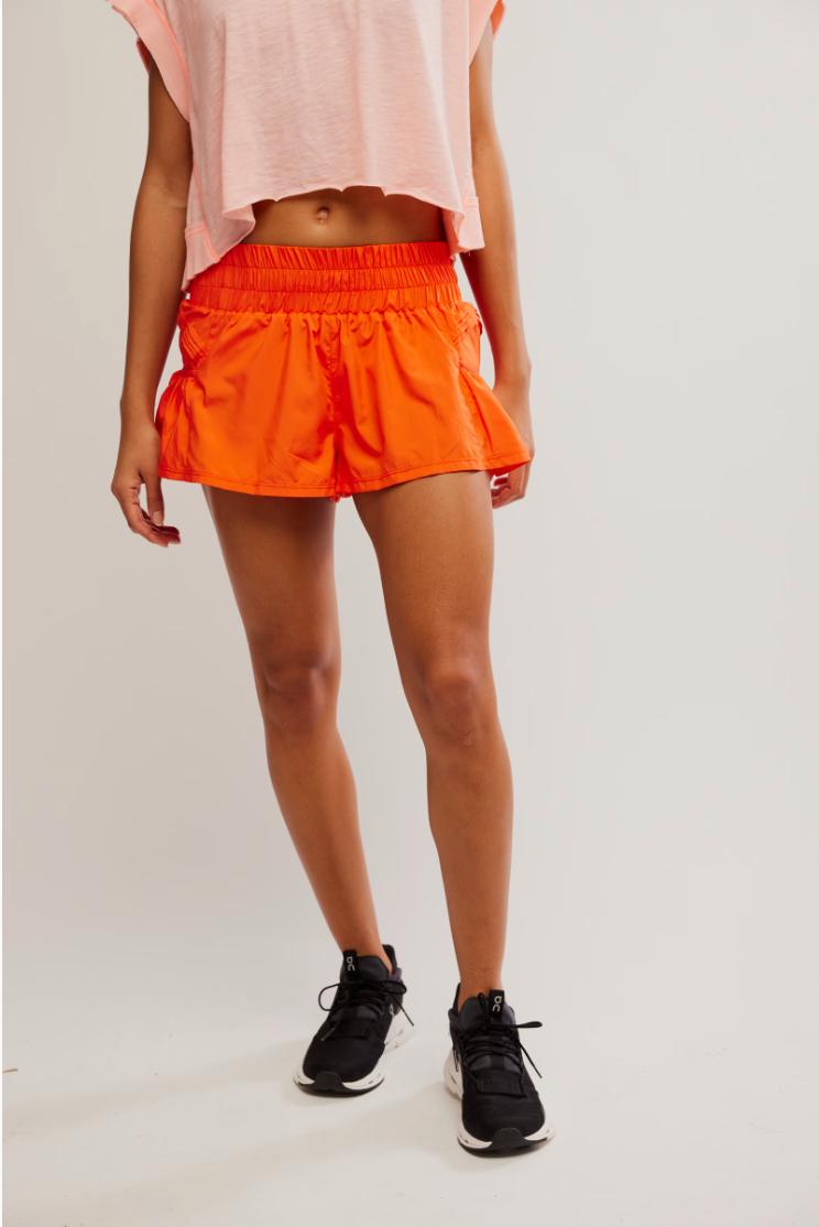 So flirty and fun shorts to spice up your workout attire, featured in a flowy style with a high-rise, smocked waistband and side pockets.