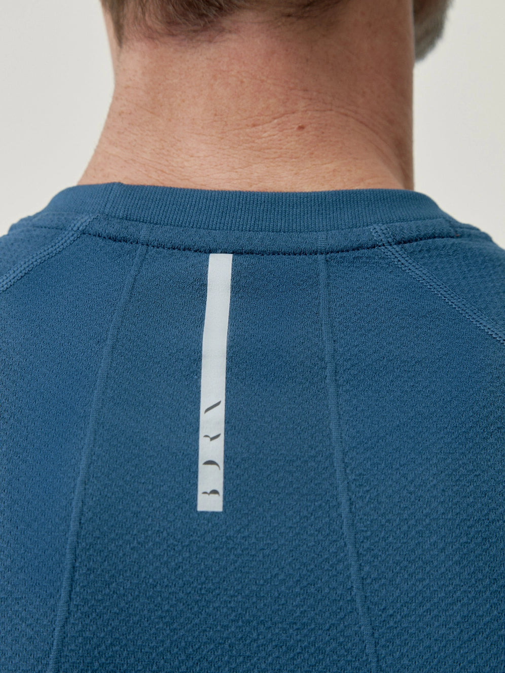 Technical short sleeve t-shirt. Lightweight, elastic and comfortable 3D “Air_feel” technology fabric to reach all your movements. With different strategic textures to provide greater breathability. It has a reflective band on the back, to be visible in the dark. Sustainable fibers 3D Technology 4 Way Stretch fabric High solar protector Extra soft touch Quick Dry Anti-Bacterial Anti-static